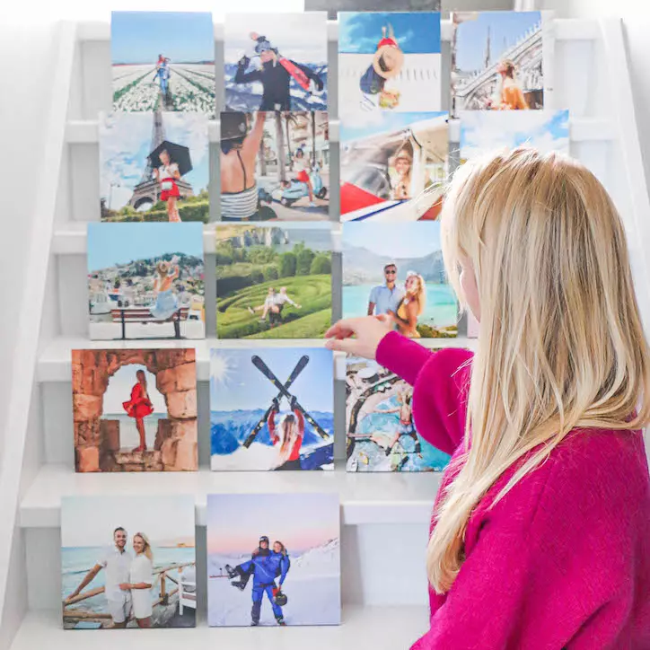 Elke vierkante tegel vertelt een verhaal, van dat eerste lachje tot de vakantie op het strand. Combineer meerdere tegels tot een speelse collage die echt iets zegt over jou en je gezin. En wil je later iets veranderen? Geen probleem. De herplakbare strip maakt het eenvoudig om je collage steeds opnieuw te herschikken.
